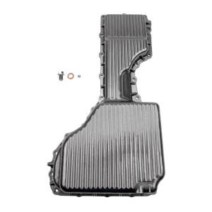 WCFab X PPE's 2017-2019 L5P Duramax High-Capacity Cast Aluminum Engine Oil Pan replaces the poorly draining stock oil pan with this flat bottom high capacity oil pan. The stock pan has a valley in the pan that retains over half a quart of your dirtiest oil and immediately contaminates fresh oil. PPE engineered this deep pan with a flat, angled bottom for more complete drainage.